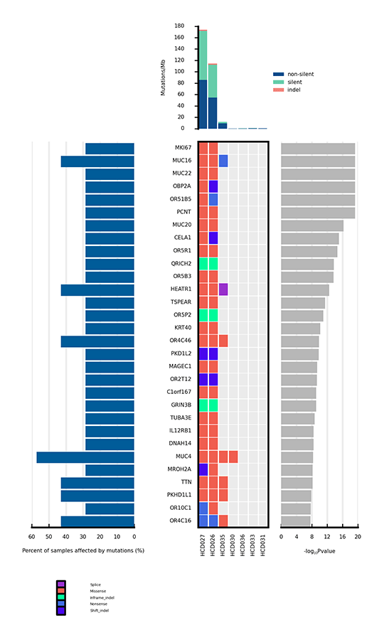 Novogene hWGS Heatmap of Significantly Mutated Genes